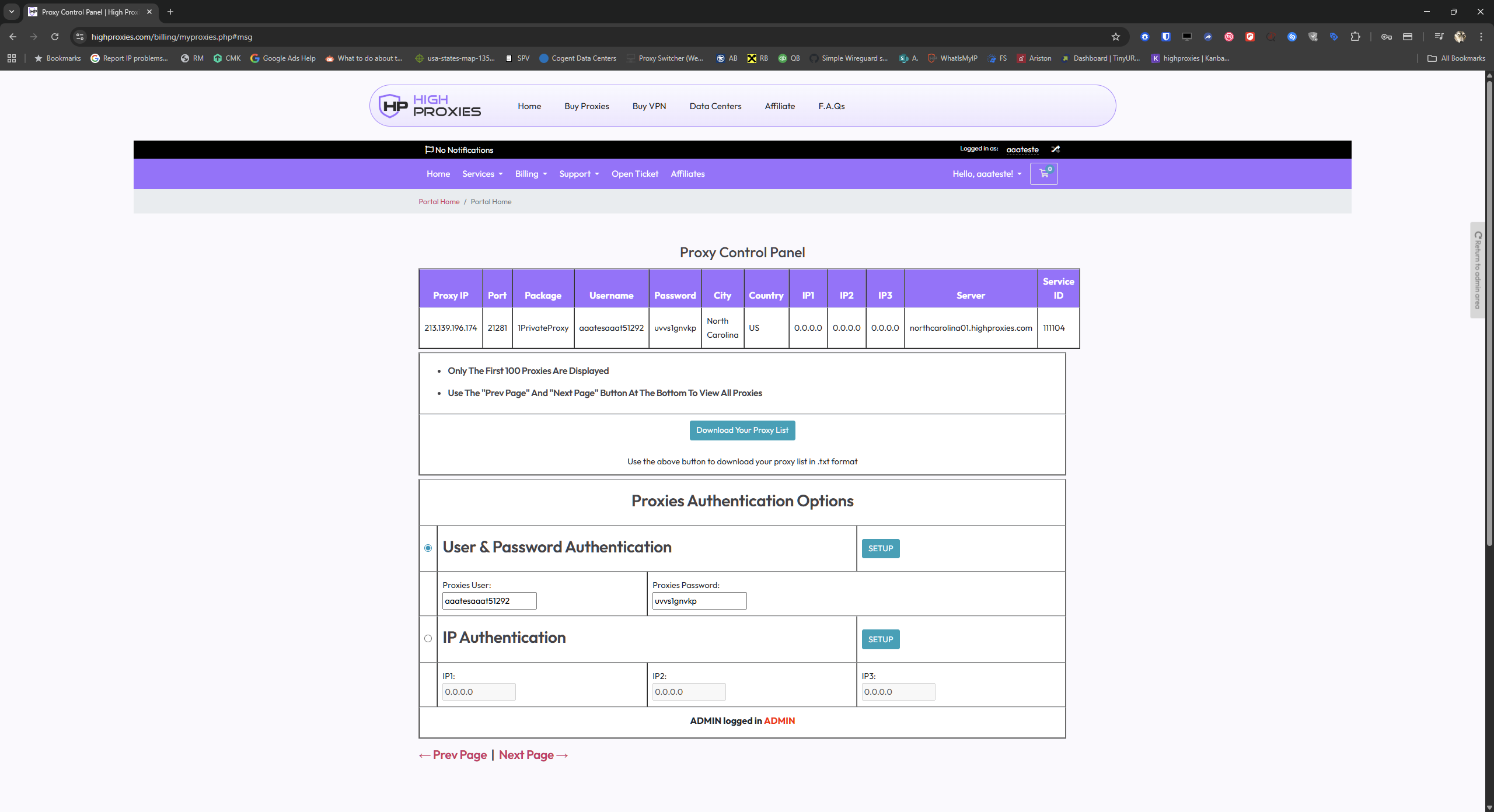 All required values (Host, Port, Username, Password) are available in your HighProxies control panel on the