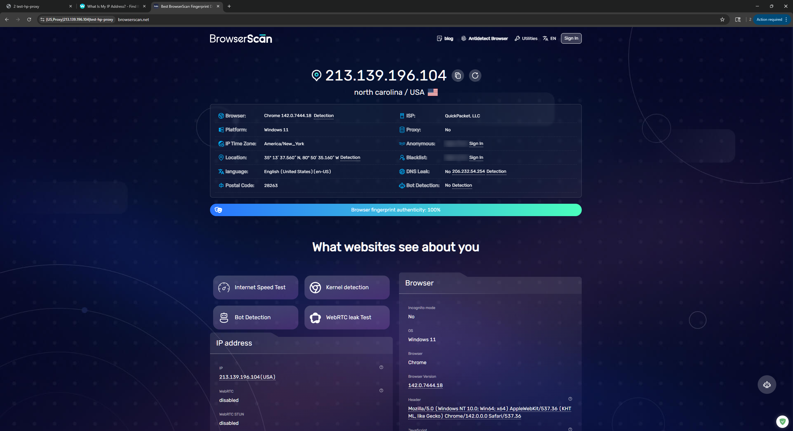 Open profile, re-test BrowserScan.